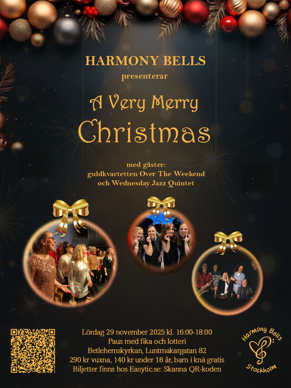Lördagen den 29 november kl. 16:00 är det dags för julkonserten * A Very Merry Christmas * i Betlehemskyrkan, Luntmakargatan 82.